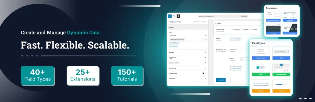 | Data & Custom Fields | Advanced Custom Fields, Meta Box | Custom data fields |